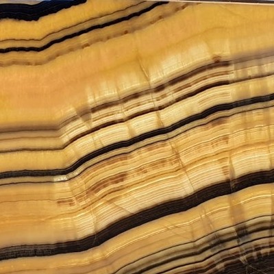 El ónix es una roca sedimentaria densamente estratificada que contiene ágata, carbonatos y diversas impurezas. La superficie puede ser multicolor o monocromática, así como tener varias inclusiones y capas multicolores, tonos contrastantes - todo depende de la proporción de las partes constituyentes de esta piedra natural. La textura única y hermosa del mineral esta muy attractiva para gente desde la antigüedad.